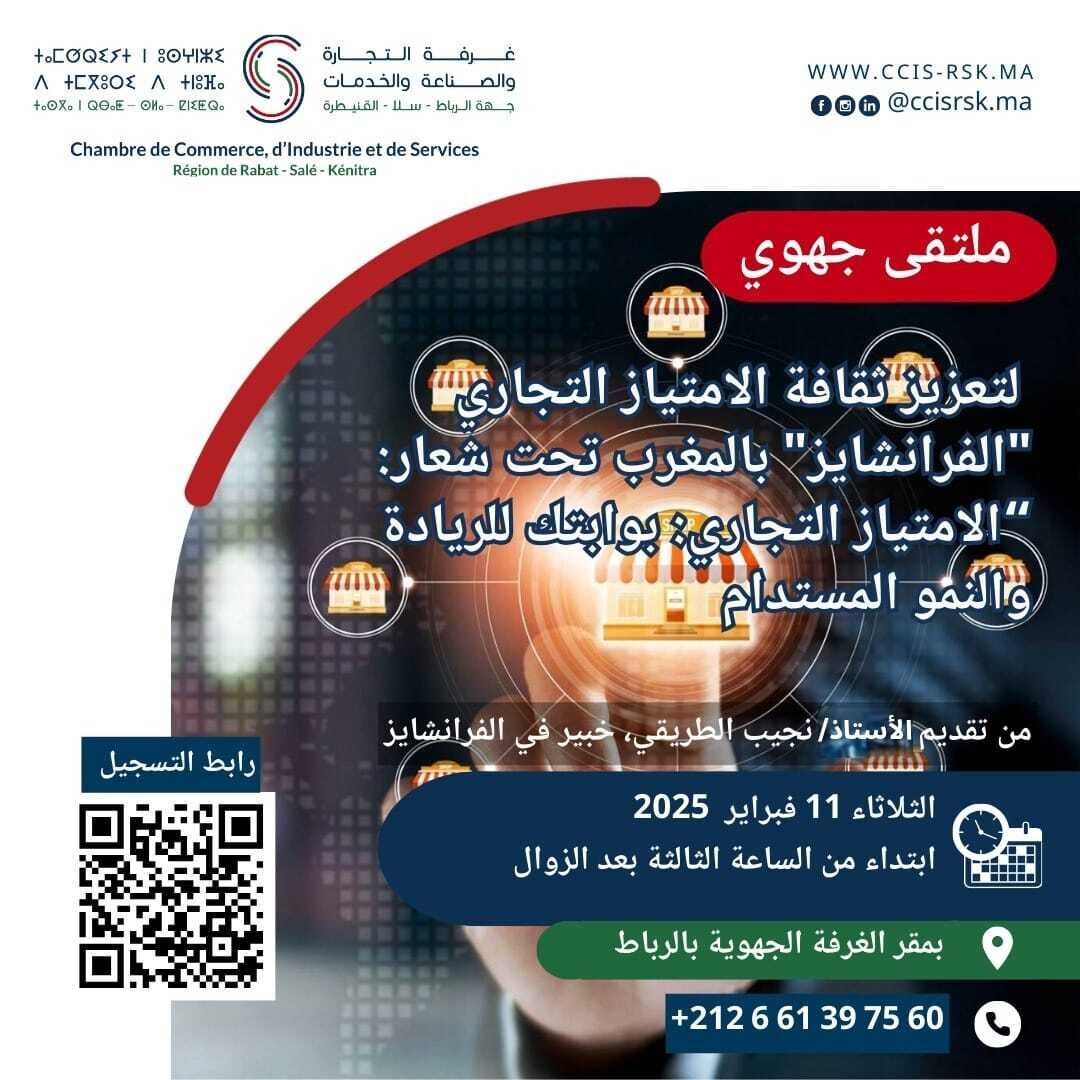 يشارك خبير الفرنشايز الأستاذ نجيب الطريقي في ملتقى جهوي متخصص بالامتياز التجاري وذلك من خلال ندوة متخصصة بعنوان( الامتياز التجاري :بوابتك للريادة والنمو المستدام ) وذلك يوم الثلاثاء 11فبراير 2025 الساعة الثالثة في مقر الغرفة الجهوية .